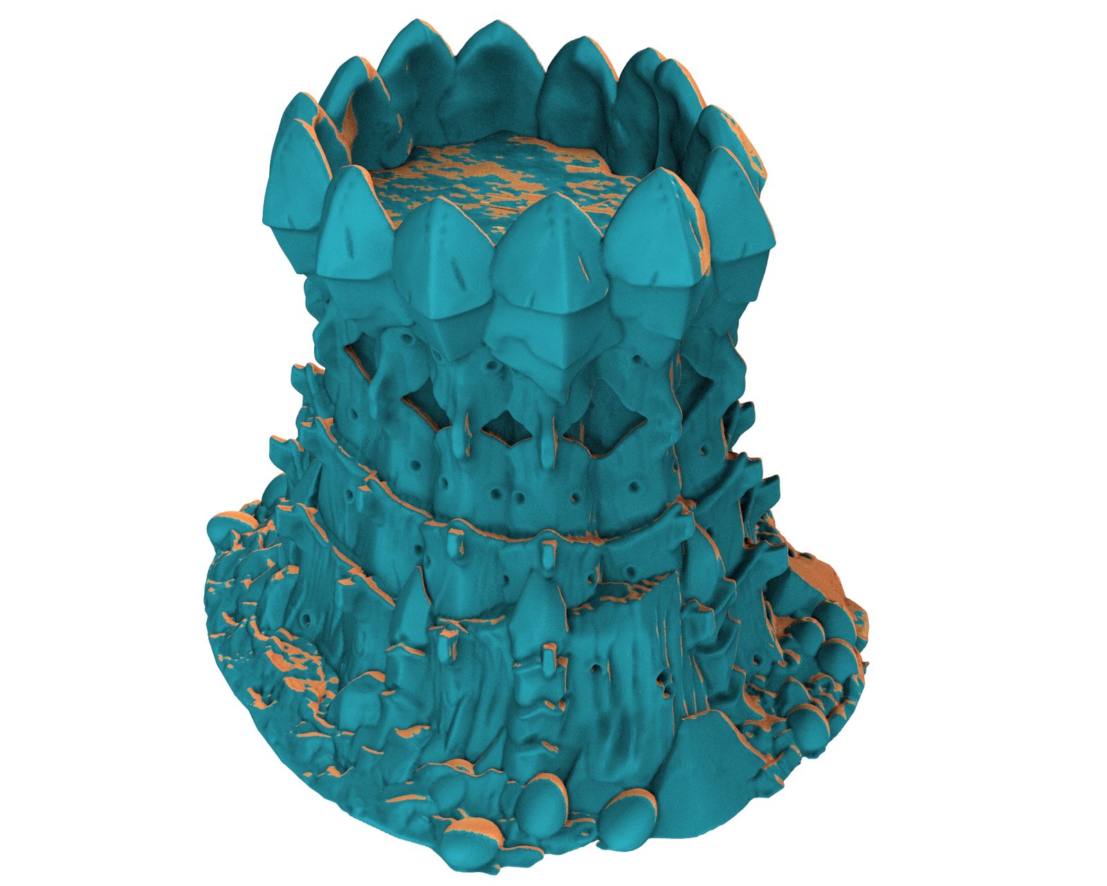 Alien hive tyranid stílusú közepes méretű tereptárgy 3D nyomtatva. Ez a darab egy 220 részes kollekció eleme, melynek minden tagja egymással harmonizáló, rovarszerű dizájnt követ, így akár önálló elemként, akár egy nagyobb tematikus környezet részeként is megállja a helyét.