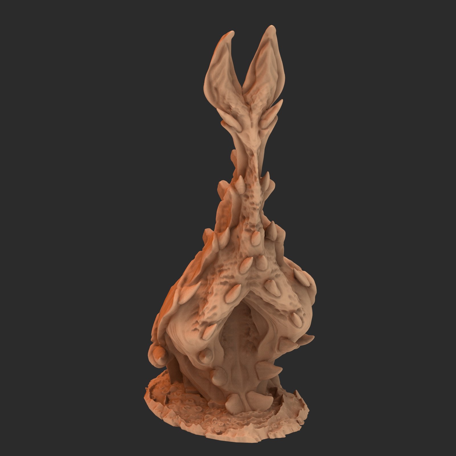 Alien hive tyranid stílusú közepes méretű tereptárgy 3D nyomtatva. Ez a darab egy 220 részes kollekció eleme, melynek minden tagja egymással harmonizáló, rovarszerű dizájnt követ, így akár önálló elemként, akár egy nagyobb tematikus környezet részeként is megállja a helyét.