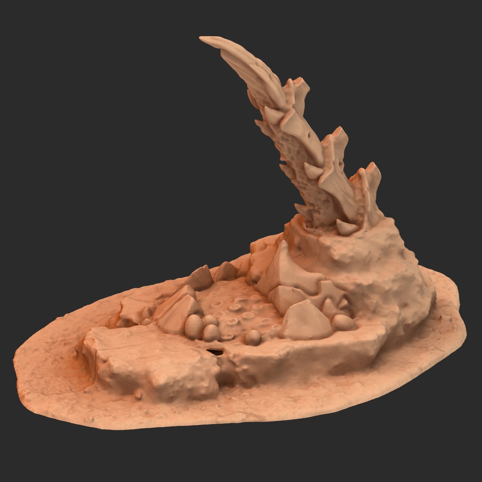 Alien hive tyranid stílusú közepes méretű tereptárgy 3D nyomtatva. Ez a darab egy 220 részes kollekció eleme, melynek minden tagja egymással harmonizáló, rovarszerű dizájnt követ, így akár önálló elemként, akár egy nagyobb tematikus környezet részeként is megállja a helyét.