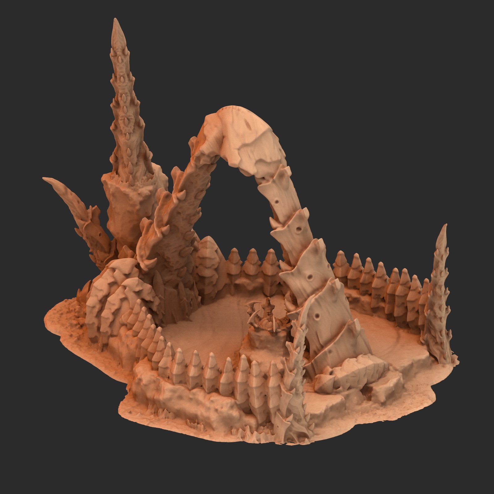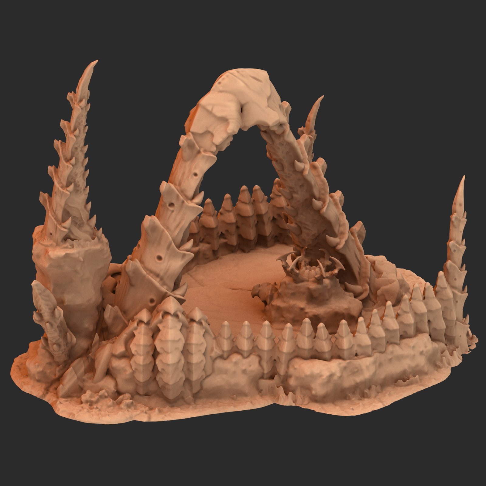 Alien hive tyranid stílusú közepes méretű tereptárgy 3D nyomtatva. Ez a darab egy 220 részes kollekció eleme, melynek minden tagja egymással harmonizáló, rovarszerű dizájnt követ, így akár önálló elemként, akár egy nagyobb tematikus környezet részeként is megállja a helyét.